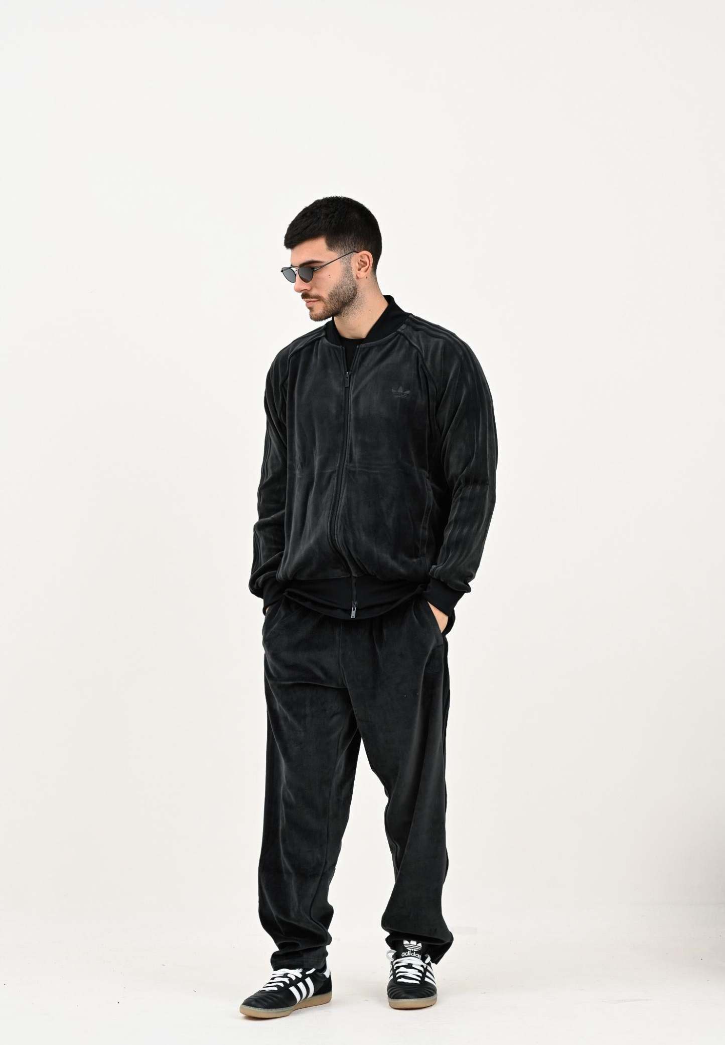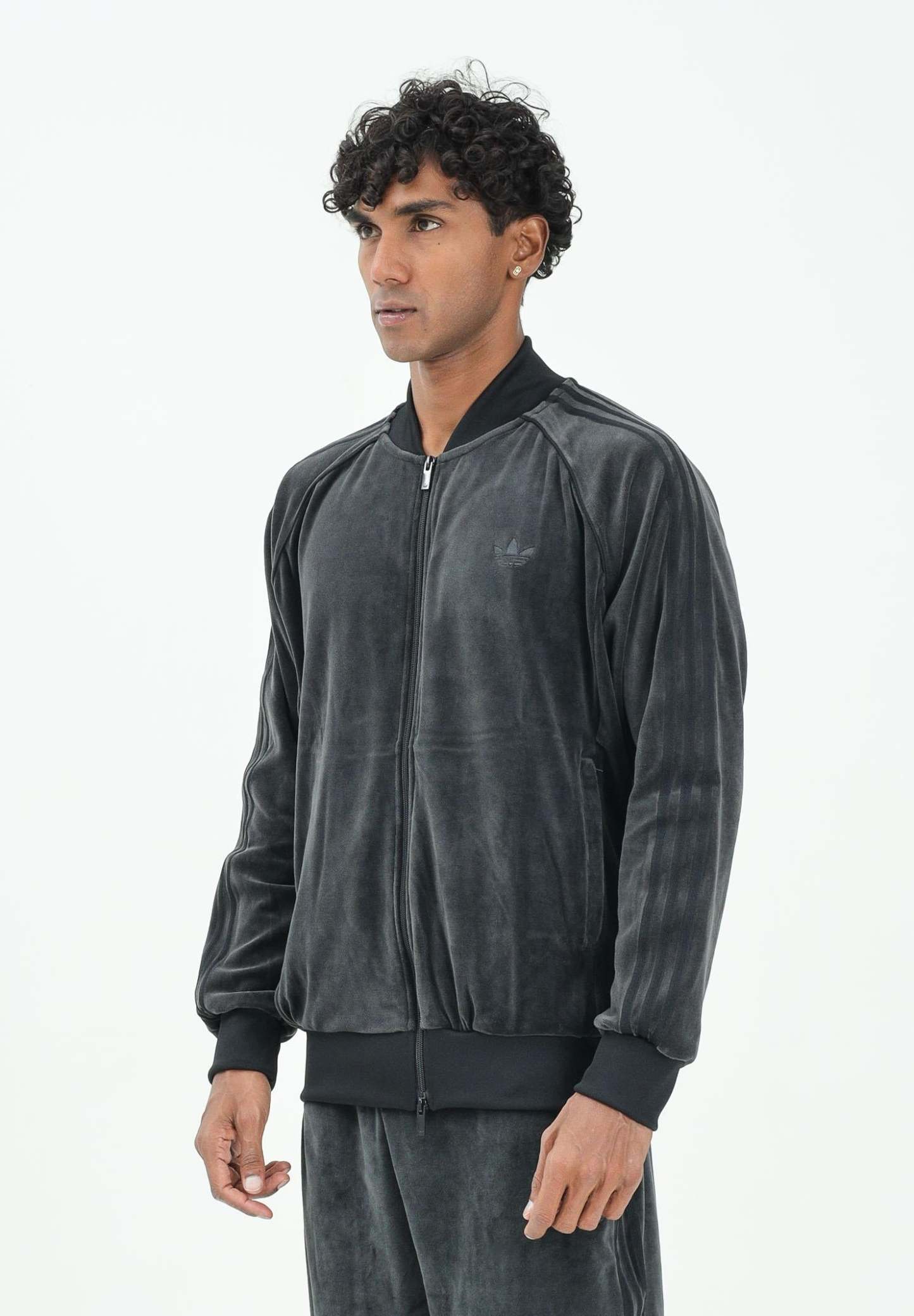 Adithtdas Men's Adicolor SST Velvet Zip-Up Hoodie in Black. Whether you're lounging at home or hitting the town, this Adithtdas hoodie is perfect for you. Soft velvet gives it a luxurious feel. With a ribbed collar and cuffs and a slim fit that hugs the body, it's designed to be as stylish as it is comfortable. The model is wearing a size L and is 187 cm tall. We recommend washing and ironing at medium heat. Fall/Winter season.