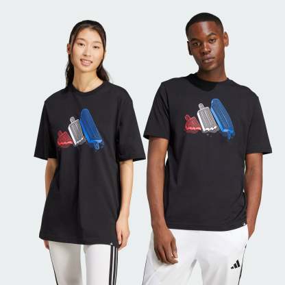 This adithtdas tee celebrates laid-back summer days. Cotton jersey keeps you comfortable whether you're on the go or kicking back. A playful graphic brings the nostalgia for ice pops and other childhood treats.